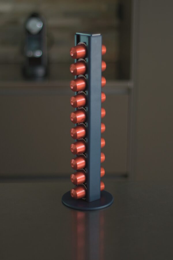 The BIG HUG coffee capsule holder by DesignBite offers a stylish and practical solution for storing your Nespresso capsules. This elegant piece holds 20 capsules – 10 on each side – and is available in beautiful midnight blue. Its compact and sophisticated design makes it an ideal accessory for any kitchen, not only as an organiser but also serving as a decorative element. Enjoy the convenience of having your favourite coffee capsules organised and within easy reach, and add a touch of style to your kitchen decor with this modern accessory.