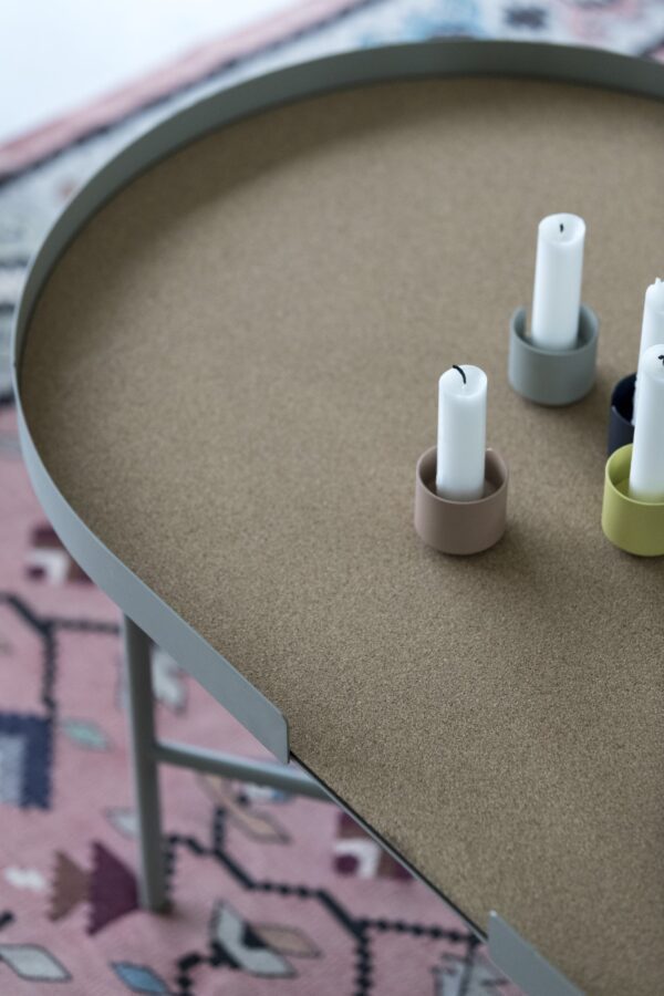 Der ovale BIG HUG Couchtisch von DesignBite, gefertigt aus pulverbeschichtetem Metall, vereint Funktionalität mit elegantem Design. Die Oberfläche des Couchtisches wird durch eine Korkunterlage geschützt, die nicht nur dekorativ ist, sondern auch die Tischplatte vor Kratzern bewahrt. Diese Produktpalette ist das Ergebnis einer harmonischen Verschmelzung von skandinavischem und asiatischem Design, kreiert vom renommierten dänischen Designstudio Hans Thyge & Co. für die taiwanische Marke DesignBite. Dieses stilvolle Möbelstück fügt sich nahtlos in moderne Wohnkonzepte ein und bietet zugleich praktischen Nutzen.