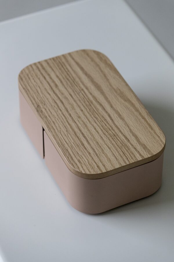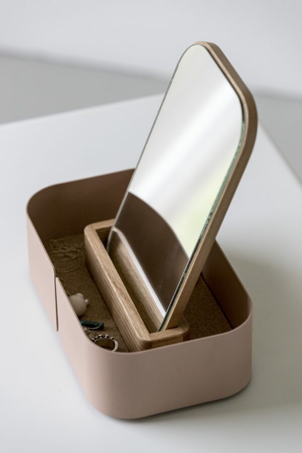 Der BIG HUG Schmuckkasten bietet eine stilvolle Aufbewahrungslösung für deine Schätze im skandinavischen Design. Mit einem eingebauten Spiegel in der oberen Abdeckung und einer robusten Struktur aus Eichenholz sowie einer weichen Korkauflage schützt er deine wertvollen Schmuckstücke vor Staub und Kratzern, während er gleichzeitig ermöglicht, dass du sie auf einen Blick betrachten kannst.