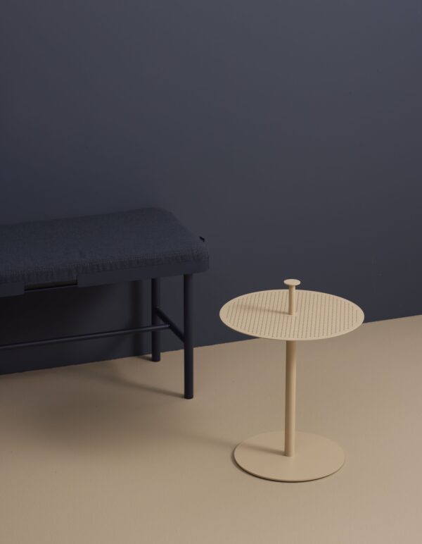 Sitzbank im skandinavischen Design von Hans Thyge & Co., pulverbeschichtetes Metall.