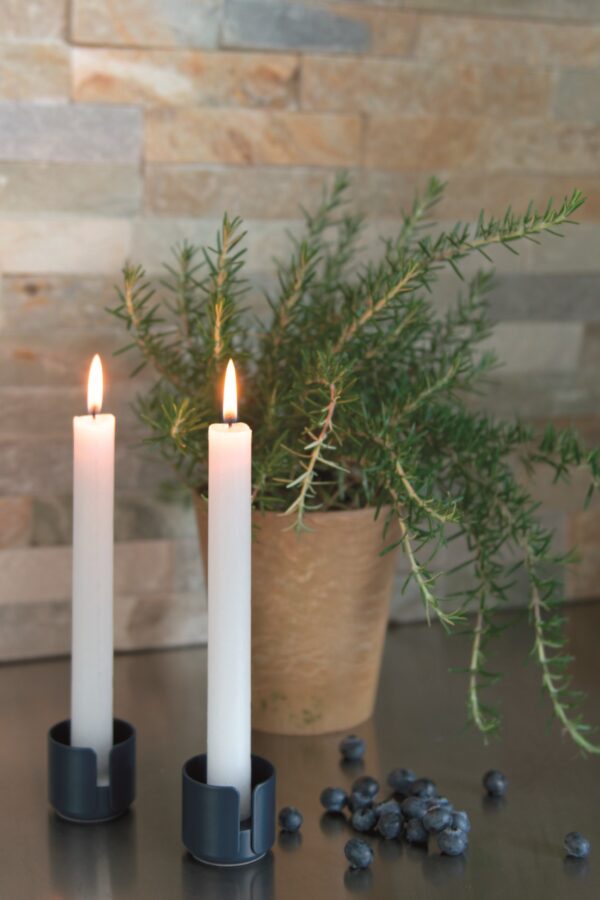 Scandinavian style tealight holder and egg cup designed by Hans Thyge & Co, made of metal, space-saving, versatile.