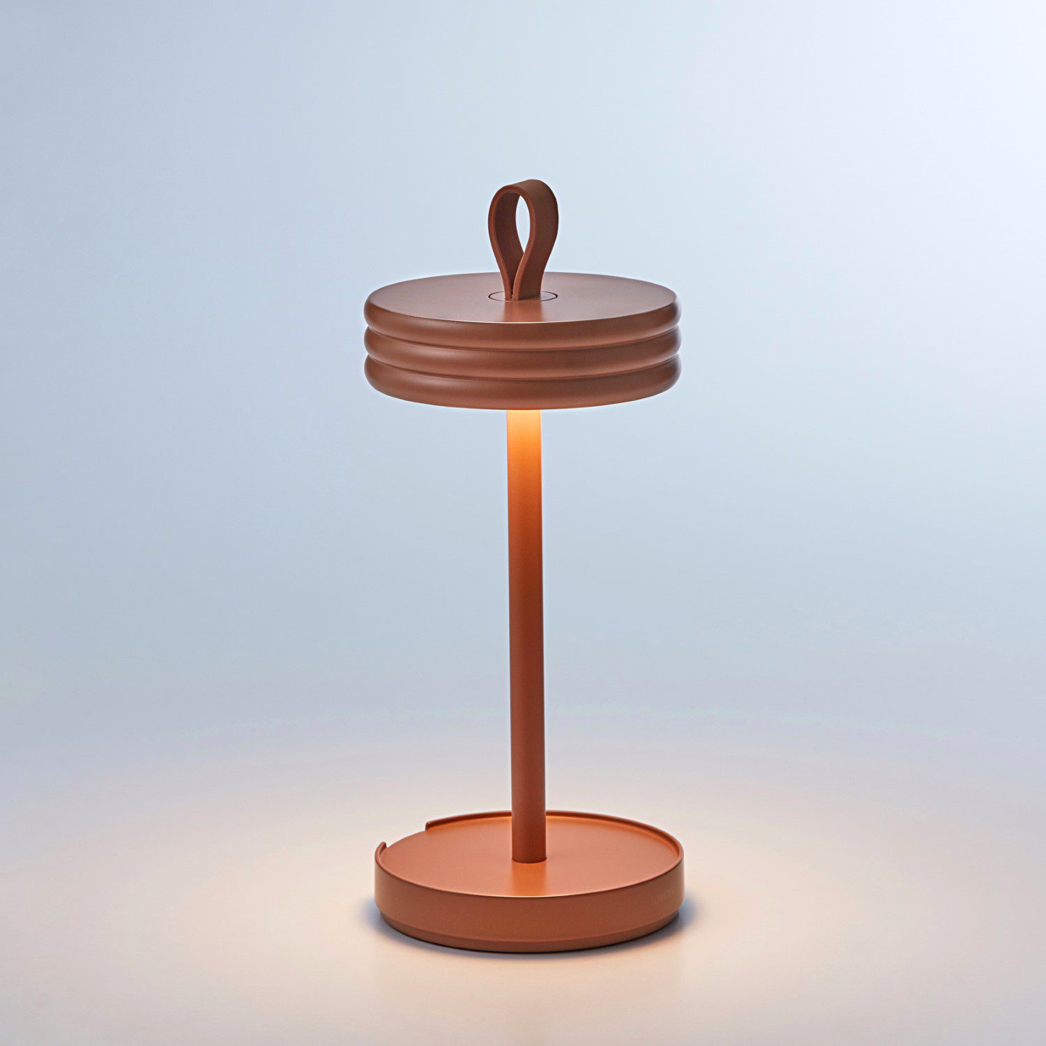 Tragbare BIG HUG LED-Lampe mit warmem Licht – robust, stilvoll und dank IP44 auch für draußen geeignet.