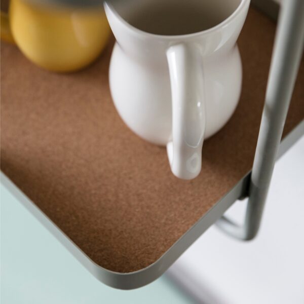 Dieses niedrige Wandregal aus der BIG HUG Kollektion von DesignBite kombiniert minimalistisches Design mit praktischer Funktionalität. Es verfügt über zwei Ablagen, die mit dekorativen Korkpads versehen sind, die nicht nur ästhetisch ansprechend sind, sondern auch das Regal vor Kratzern schützen. Ideal für die Aufbewahrung von Küchenzubehör, Deko-Objekten oder Alltagsgegenständen wie Halstüchern und Schlüsseln in der Eingangshalle. Erhältlich in Nachtblau und Hellgrau, reflektiert dieses Regal die harmonische Verschmelzung von skandinavischem und asiatischem Design, entworfen von dem renommierten dänischen Designstudio Hans Thyge & Co. für die taiwanische Marke DesignBite.