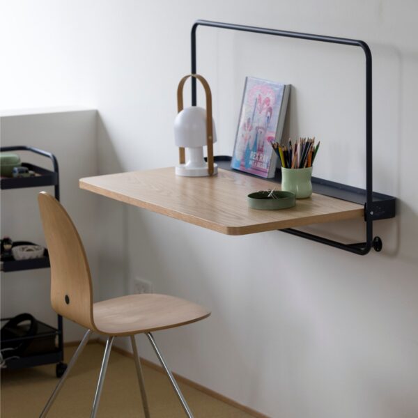 Der klappbare Wandtisch aus der BIG HUG Kollektion von DesignBite ist die perfekte Lösung für alle, die Funktionalität und Stil in einem kompakten Format suchen. Dieser Wandtisch aus Eichenholz und einem robusten Metallgestell bietet eine effiziente Organisation deines Wohnraumes und hilft, Unordnung zu minimieren. Ideal für Flur, Küche, Ess- und Wohnzimmer, fügt sich der Wandtisch nahtlos in moderne Interieurs ein. Entworfen von dem renommierten dänischen Designstudio Hans Thyge & Co., vereint dieses Möbelstück den entspannten nordischen Stil mit Vintage-Elementen und setzt auf Metall, Holz und Kork als Hauptmaterialien.