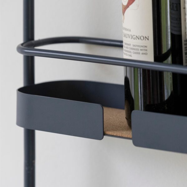 This wine rack from the BIG HUG collection by DesignBite elevates your kitchen or dining room with its minimalist design. It has two shelves that offer convenient storage for a few bottles of wine for cooking or quick availability. The shelves are covered with cork pads, which not only serve as a stylish element but also protect each shelf from scratches. Designed by Hans Thyge & Co for DesignBite, this wine rack, available in midnight blue, blends seamlessly into any modern interior and underlines the harmonious combination of Scandinavian and Asian design.
